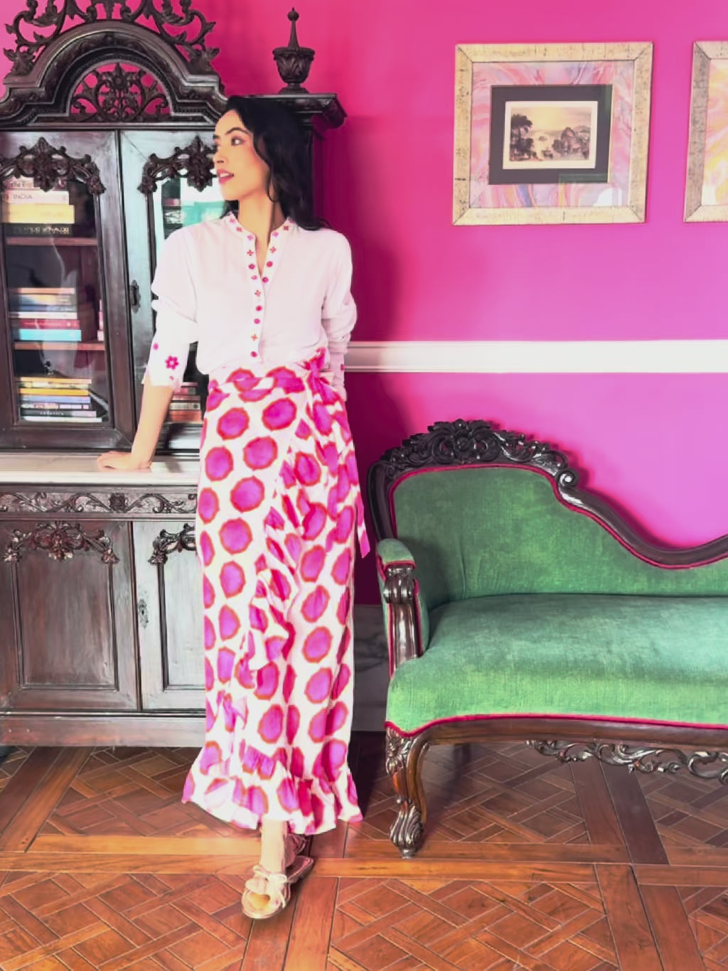 Mullein Skirt Ikat Pink Orange