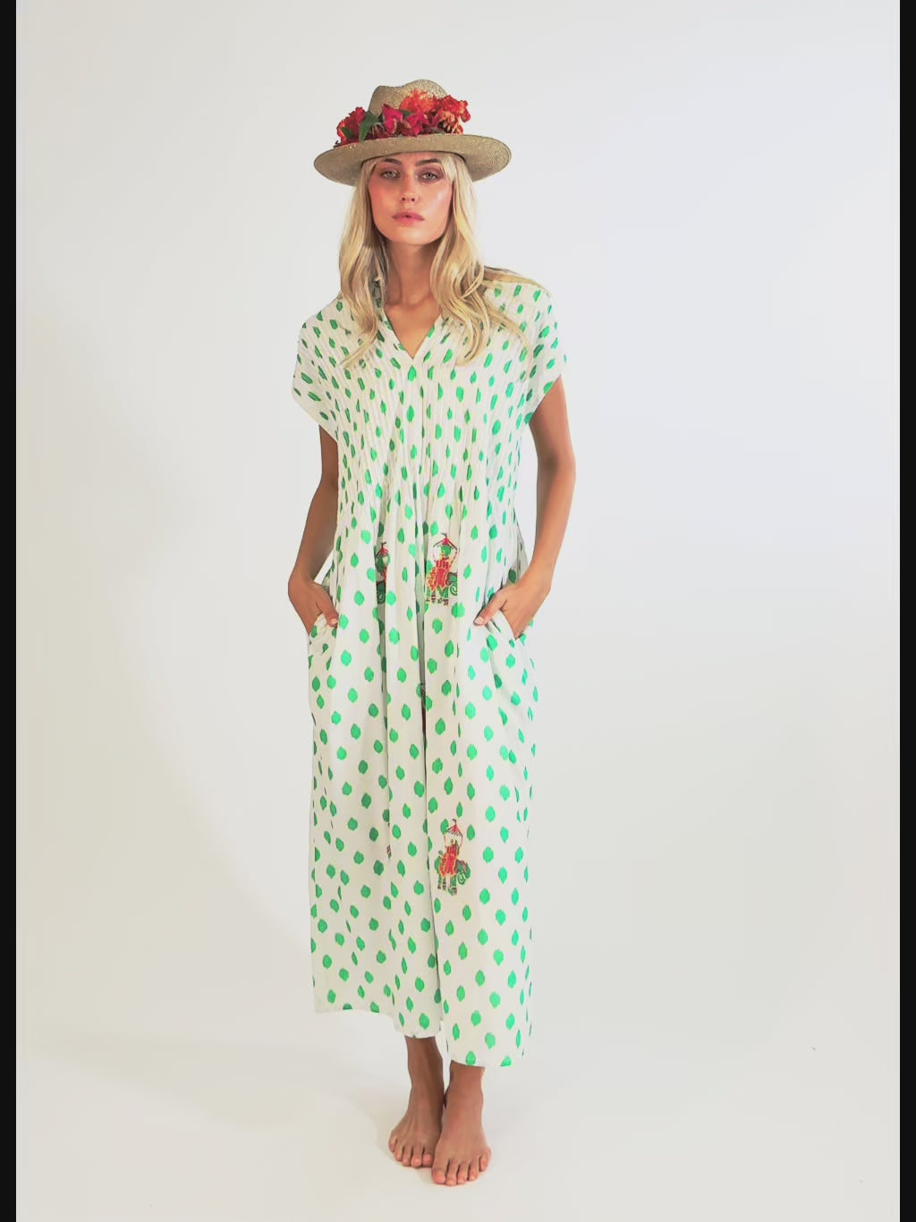 Sea Cale Dress Dots Emerald Elephant Embroidery