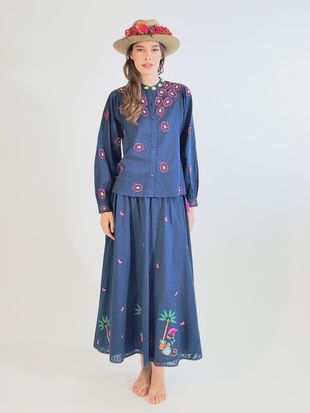 Vanilla Skirt Monkey Embroidery on Navy